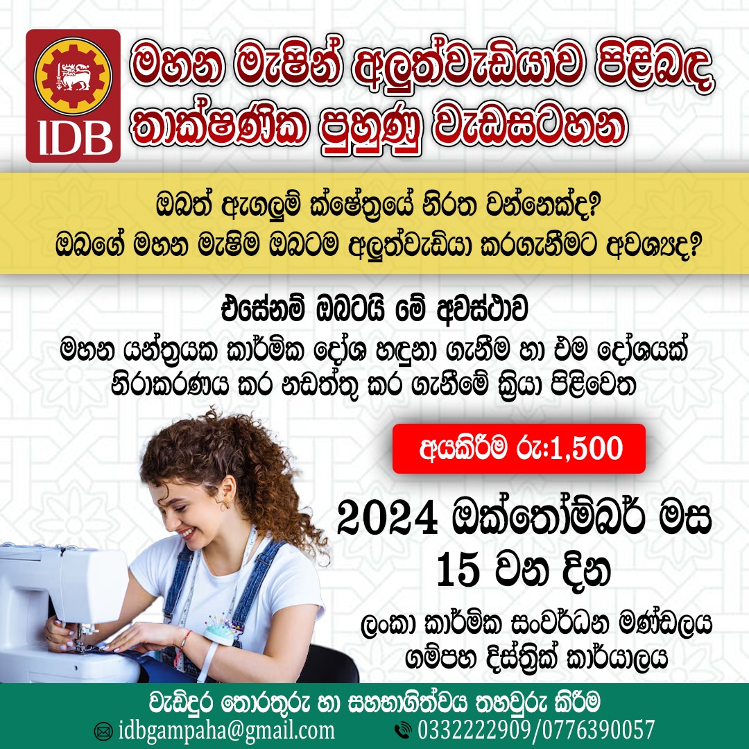 We are pleased to announce a comprehensive Sewing Machine Repairing Workshop designed for individuals seeking to enhance their skills in sewing machine maintenance and repair. This workshop will provide participants with hands-on training and in-depth knowledge of various types of sewing machines, troubleshooting techniques, and repair procedures.